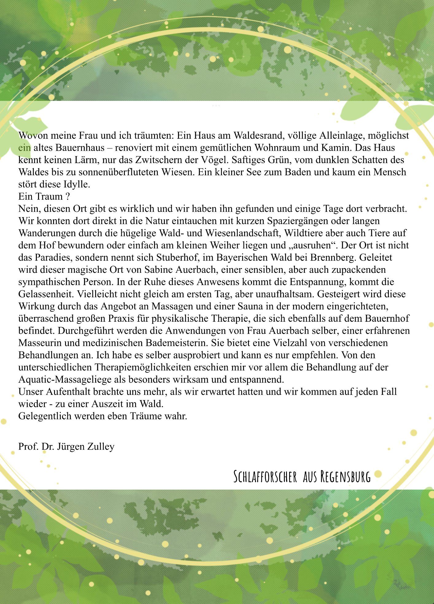 „ Viele von uns suchen Ruhe und Entspannung in der doch sehr hektischen und schnelllebigen Zeit. Ein für uns idealer Ort, die zu finden, ist der Stuberhof.