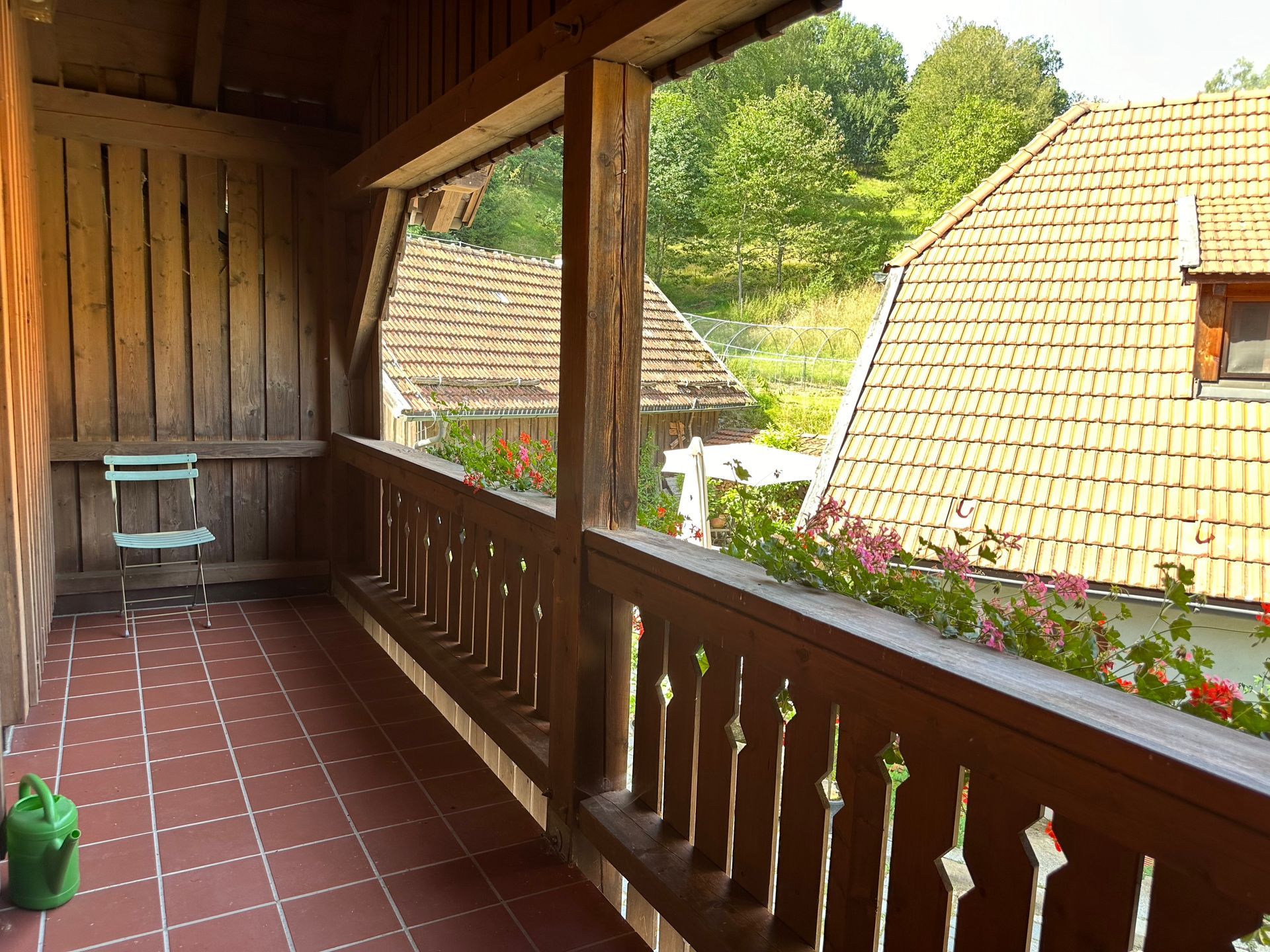 Unsere Wohnung hat 3 sehr große Balkone. Zwei zum Tal hin, einer der Hofseite zugewandt.